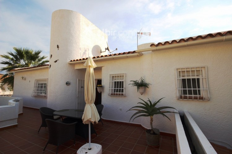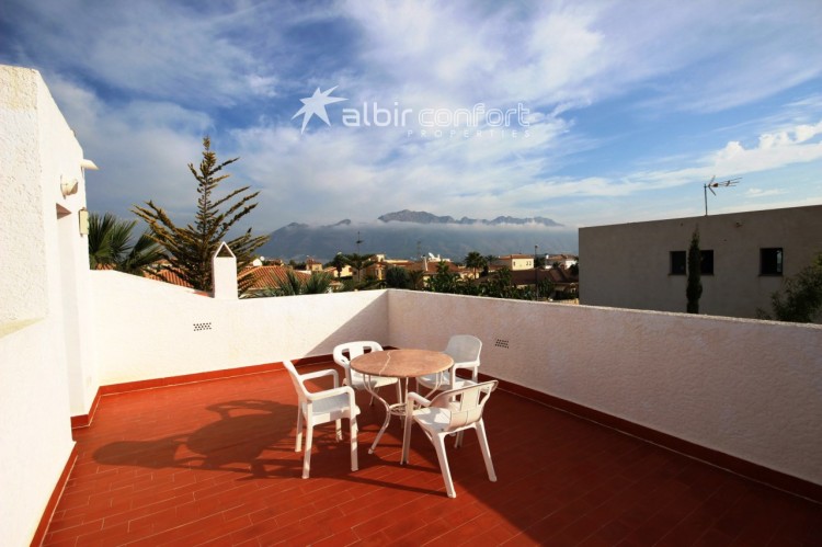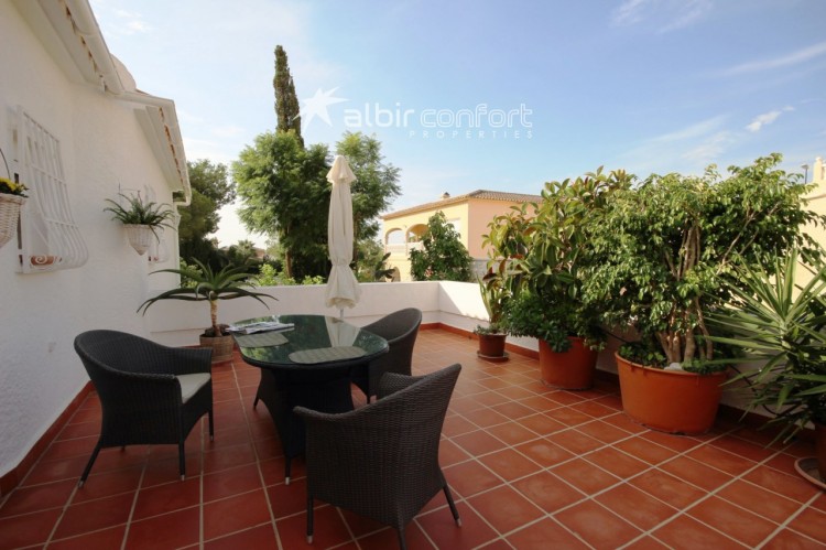 Villa i Bello Horizonte som ligger mellom Altea og La Nucia(Costa Blanca ). Den har tre soverom og to bad, og har en deilig takterrasse på 26 m2. Gassfyrt sentralvarme. Meget solrik hele dagen. Møblert.