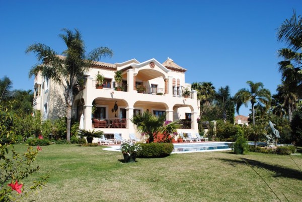 Stor luxusvilla i Marbellas Beverly Hills, hörntomt, 12 rum, utsikt över Medelhavet, separat tjänstebostad, garage, pool, golvvärme, biosalong, A/C, larm, 805m2 + 2050m2 tomt.