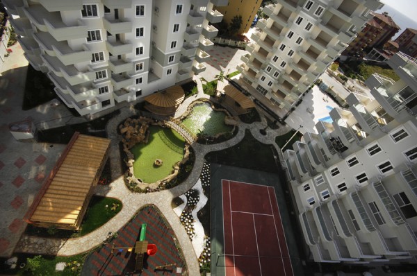 Leiligheten har utsikt over stranda,taurus fjellene og alanya castle.Komplekset består totalt av 128 leiligheter og 16 Doublex pent house leiligheter delt i fire blokker.