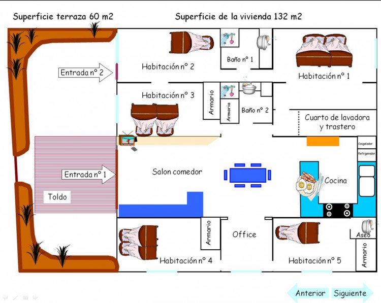 It has two entrances with direct street access through the terrace. It is located in Costa del Silencio, a quiet residential area with low buildings and green spaces, located between Playa de las Americas (19 minutes) and the Reina Sofia Airport (14 minutes), the nearest town is Las Galletas (3 minutes) with all kinds of services: health, education, commercial, public transport and beach.