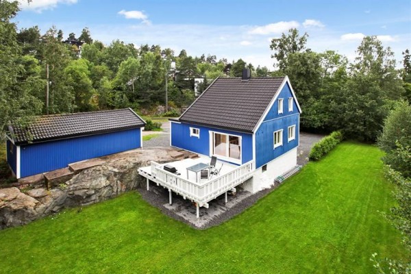 Enebolig meget sentralt beliggende på Nesoddtangen. Stor tomt og nærhet til badestrand.