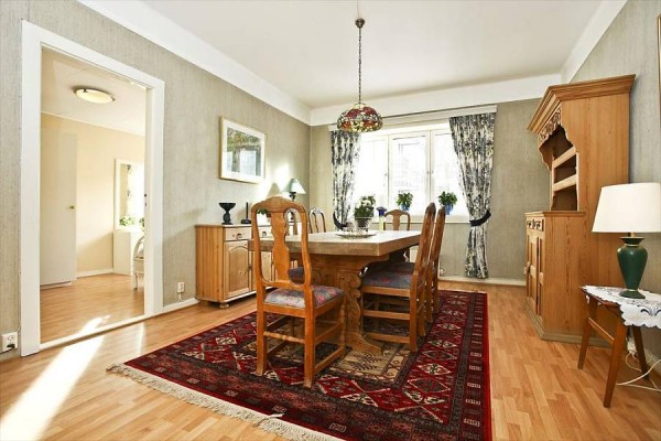 Benyttes i dag som spisestue, men egner seg også godt som soverom. Laminat på gulv, tapet på vegg og malt himling.