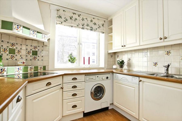Pent kjøkken godt utrustet med integrerte hvitevarer og downlights i tak. Innredningen har takhøye skapskrog med hvite/profilerte fronter, lyslister med lys under overskap, laminat benkeplate samt nedfelt rustfri oppvaskkum. Det er opplegg for vaskemaskin, varmtvannsbereder, integrert oppvaskmaskin, integrert stekeovn/komfyr med nedfelt koketopp, integrert fryseskap, stort kjølehjørne, integrert micro-ovn, ventilator og fliser over benk. Laminat på gulv, malte vegger og malt himling.