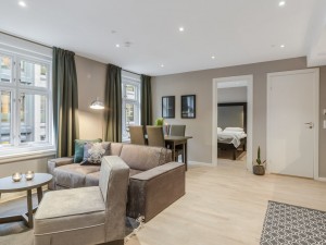 Leiligheten har ett soverom, stue med sofa / tomt, spisebord, bad med dusj og fullt utstyrt kjøkken. TV og internett er inkludert. Dronningensgate 8 ligger i Oslo sentrum med gangavstand til sentralstasjonen og hovedgaten Karl Johan med butikker og restauranter. Det er offentlig transport i nærheten av populære museer, attraksjoner og steder i Oslo.