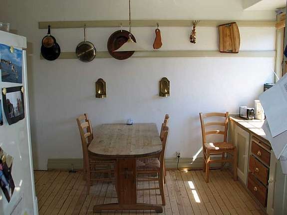 Stort og pent kjøkken med komfyr, vaskemaskin og kjøleskap med fryser.I tilleg er det fellesvaskeri i eiendommen.