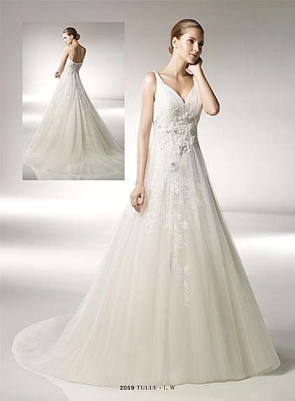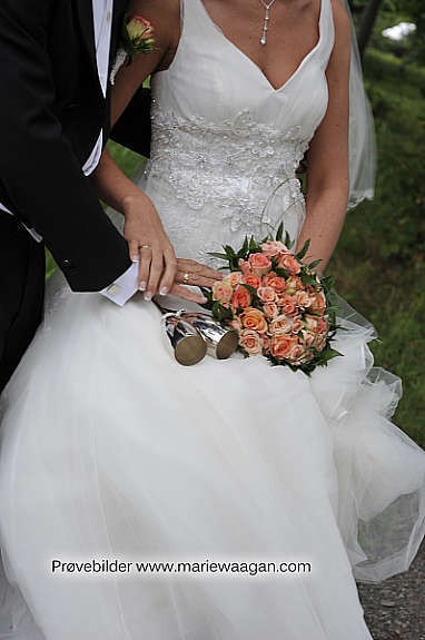 Benjamin Roberts 2010 modell.Kr 10000,- Størelse 38. Brudekjole med åtte skjørt, ferdig renset, fine detaljer.Ønsker du en brudekjole litt utenom det vanlige så er denne midt i blinken. Den er litt ekstra med de nydelige blomster detaljene som blir tonet litt ned med et lag tyll over!Knapper bak og innvedig korjett. Ring meg gjærne for prøving!