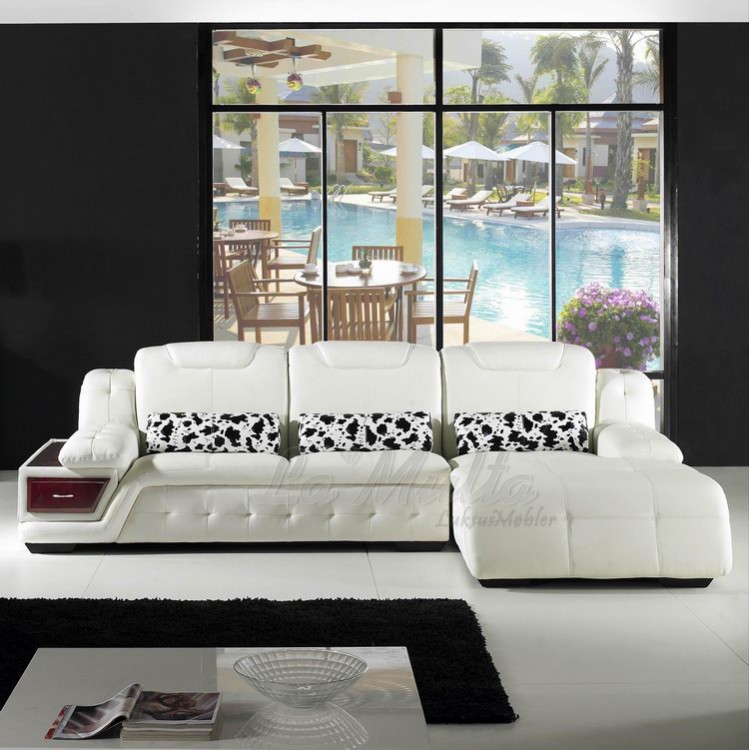Skinnsofa Mirano av meget eksklusiv design, laget av ekte skinn.
