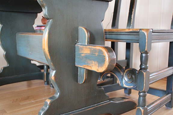 Heidal spisebord, antikkblå underdel, ubehandlet tykk furuplate, avrundede hjørner,