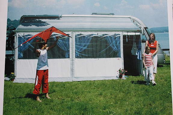 | Markisetelt, passer til Fiamma F45, lengde 4,5 meter. Farge: grå og blå. Med gardiner. |